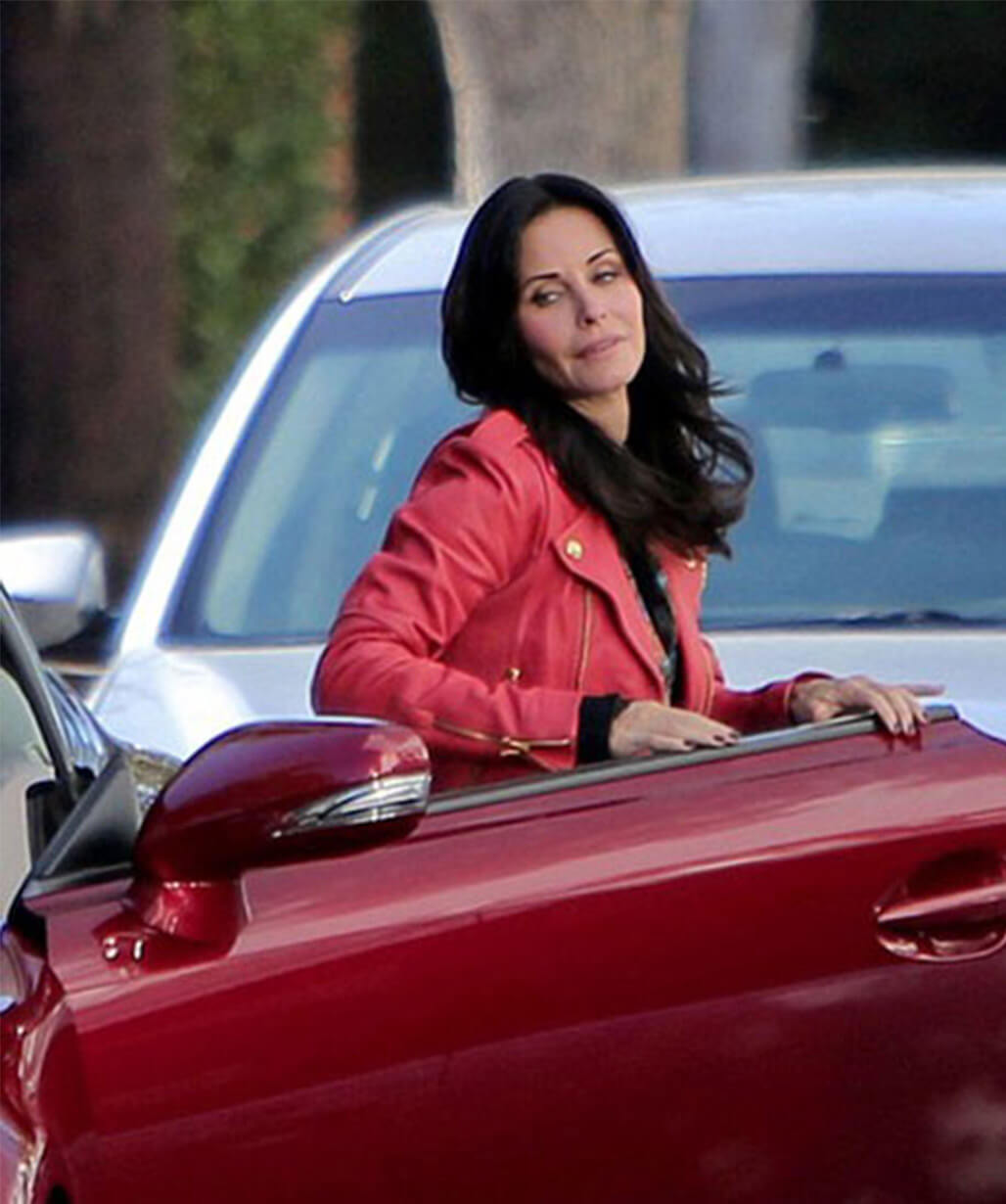 Courteney Cox Red Biker Leather Jacket
