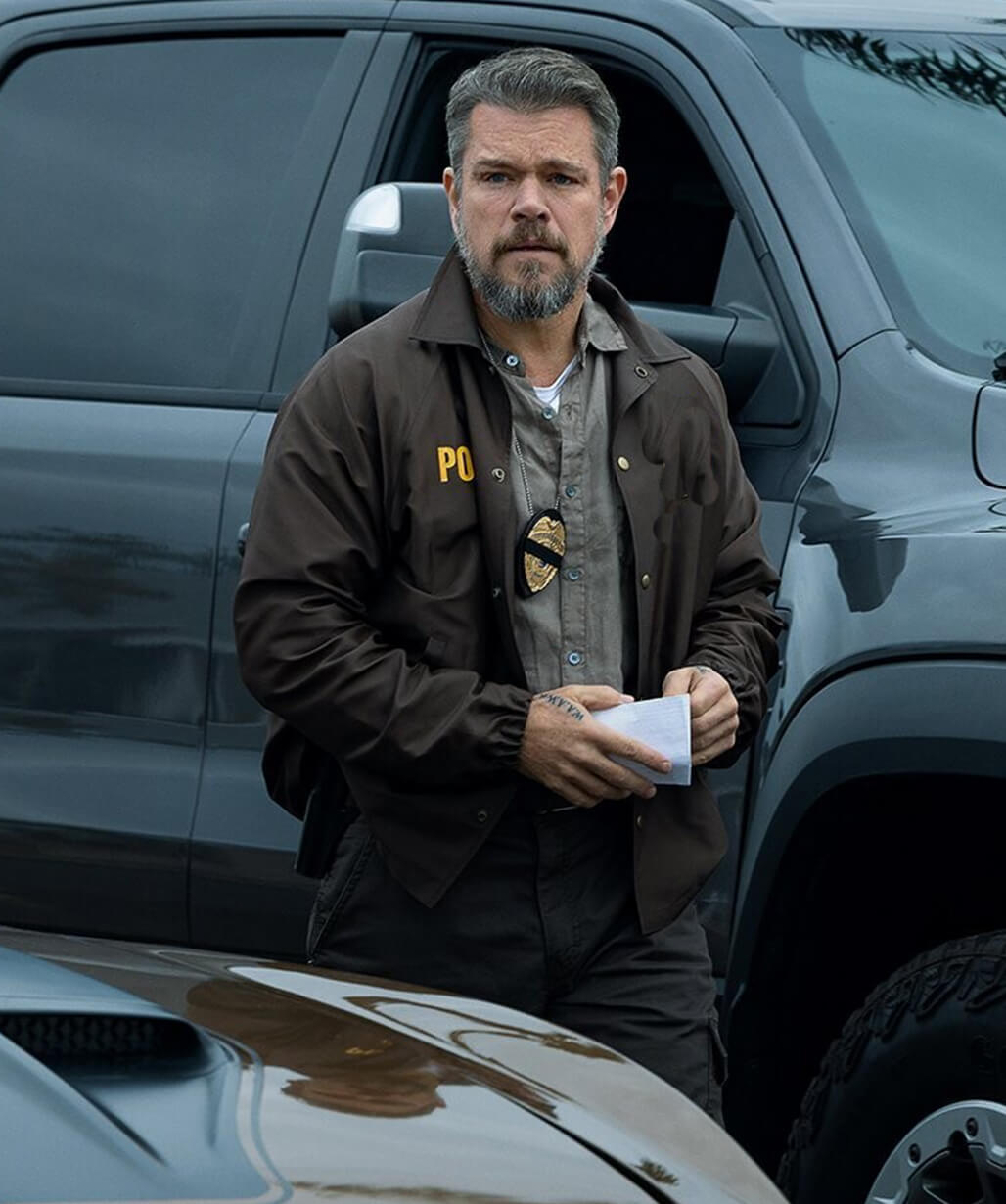 Matt Demon The Rip 2026 Lieutenant Dane Dumars Brown Jacket