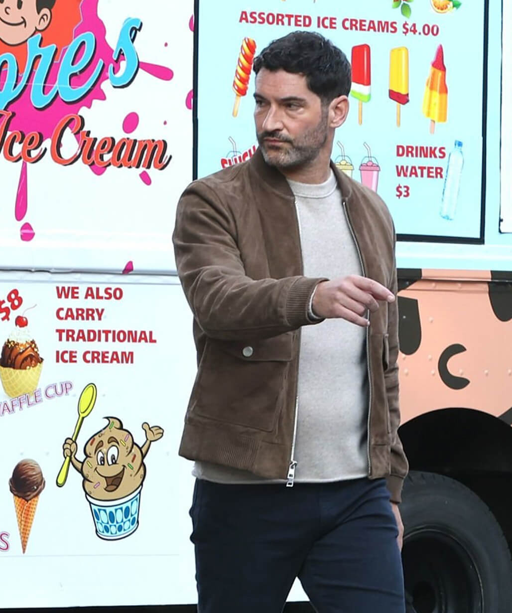 Tom Ellis CIA 2026 Brown Bomber Suede Jacket
