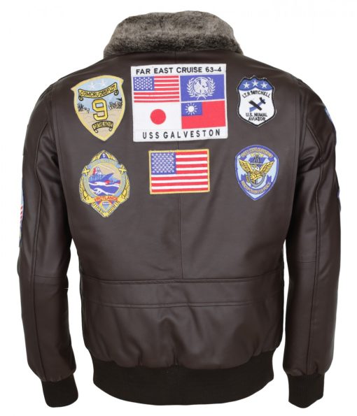 To make sure extra comfort and ease of the user best quality viscose lining is used on the inside, decorated with all 17 patches making the apparel more captivating and striking flight bomber jacket. Front zippered closure of branded material, fur collar. Cuffs and waistband are rib knitted. There is no need to waste your time, buy this top gun movie leather jacket from our online store now.