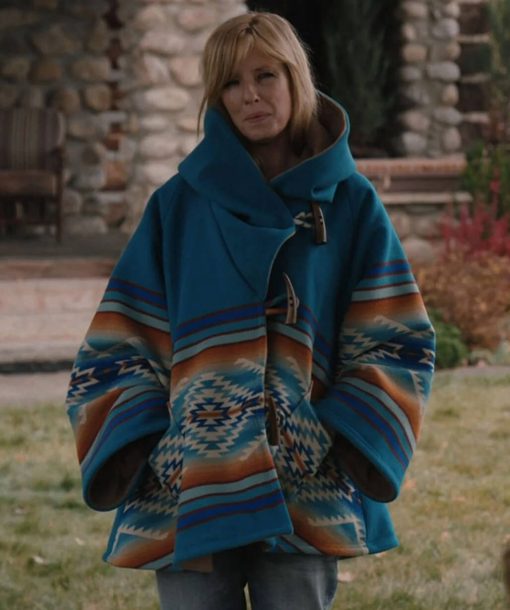 Yellowstone Beth Dutton Kelly Reilly Hooded Blue Coat